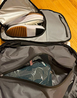 There are more bag compartments than I thought. They can fit my shoes and clothes while still leaving plenty of room for other items needed for travel. The vacuum feature also works well to compress the size of the bag.